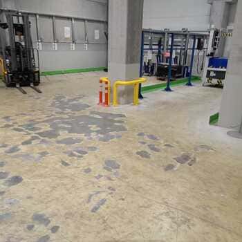 К нам обратилась управляющая компания, работающая на объекте «Лемана ПРО». Требовался ремонт двух участков на аккумуляторном складе — верхний слой антистатического пола вовсю крошился.