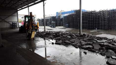 При техническом осмотре объекта мы получили следующие данные: основание — асфальт толщиной примерно 70-80 мм на хороших бетонных плитах. При формулировке задачи заказчик ключевым фактором итогового покрытия назвал долговечность — объект в собственности и есть желание использовать его длительно. Также при выполнении работ требовалось учесть, что на данной площадке будет интенсивное движение различной техники.