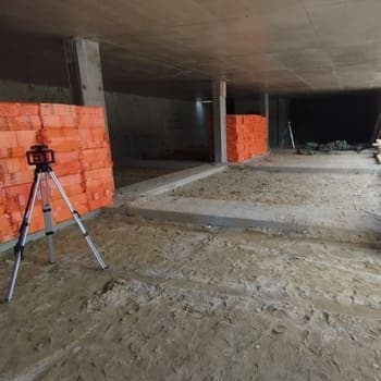 Подробный технический опрос по телефону и тщательная выездная оценка объекта предоставили нашему главному конструктору достаточно информации, чтобы подобрать оптимальную конструкцию – бетонный пол с упрочнителем, средней толщиной 160 мм, армированный двойным слоем арматуры.
