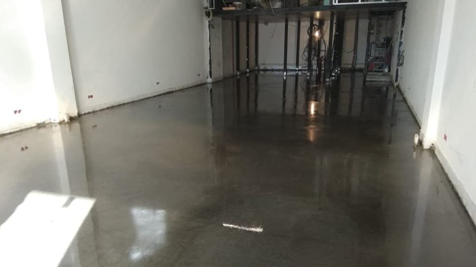Объект планировался под торговое помещение общей площадью 106 м2. Клиенту очень важны были сроки, стояла задача за одну смену залить всю площадь. На пол нагрузки планировались небольшие: по покрытию будут ходить люди, а в некоторых местах будут стоять мебель и стеллажи под цветы. Также заказчик отметил, что пол должен быть ровным, иметь цвет как на автомобильных парковках и гарантию не менее двух лет.
