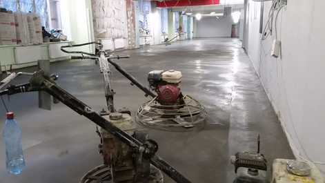 Работы проводились в стеснённых условиях на четвёртом этаже корпуса, так как помещения были маленькой площади. При подаче труб бетонной трассы их нужно было аккуратно поместить в маленький оконный проём, не задев при этом линии электропередач. Также из-за узких дверных проемов нам пришлось отказаться от использования двухроторных затирочных машин и проводить работы по затирке топпинга обычными однороторными машинами.