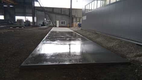 У заказчика в помещении производятся большие металлические изделия. От нас требовалось залить пол на относительно небольшой площади в 104 м2. Нужно было сделать эту площадку как раз для итоговой проверки готового изделия.