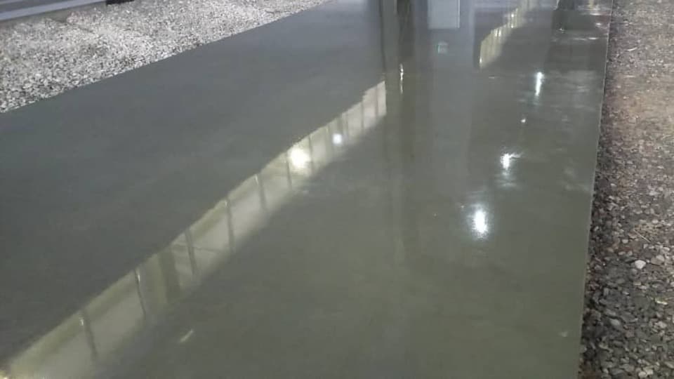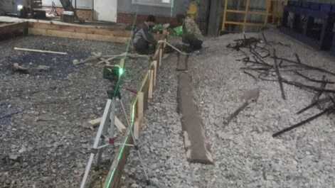 Заказчик попросил сделать очень ровное итоговое покрытие, причём одну половину нужно было сделать просто бетонной, а другую – с топпингом. Такое пожелание обосновывалось тем, что пол без топпинга не является шероховатым. У клиента ранее уже был опыт покрытия с упрочняющим верхним слоем – было довольно скользко, когда люди заходили с улицы в мокрой от снега обуви.