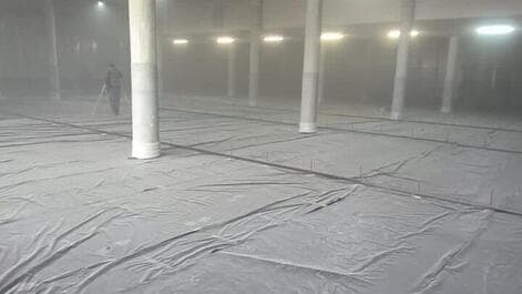 Изначально у заказчика была идея в своём производственно-складском помещении сделать полимерный пол. Стояла задача привести основание в более-менее ровный вид и итоговое покрытие сделать бессильным.