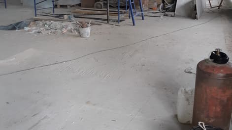 Нашему клиенту другая подрядная организация залила бетонную плиту под прави́ло. Из-за этого оно было местами неровное и со слабым верхним слоем, который надо было немного снять. Клиент искал решение в виде финишного покрытия, которое будет стойким к высоким эксплуатационным нагрузкам. Это важный фактор, поскольку помещение – автосервис, в который будет заходить и ремонтироваться тяжёлая строительная техника. Второй важный фактор к итоговому покрытию – устойчивость поверхности к воде и маслам.