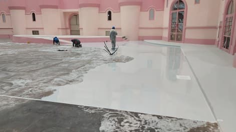 Клиент сформулировал свою потребность так: высокоэстетичное бесшовное полимерное покрытие, способное выдерживать интенсивные пешеходные нагрузки и динамические нагрузки от движения обслуживающего транспорта, рассчитанное на длительное время эксплуатации. На данном объекте была поставлена задача обустроить открытую площадку с тротуарами вокруг аттракциона «Сладкая Карусель» на территории Hello Kitty.