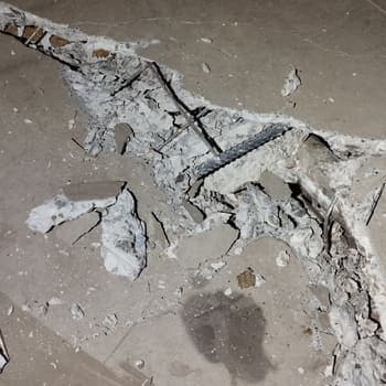 Предварительная техническая оценка привело к предположению, что причина разрушения — плохо утрамбованное песчаное основание. На основе этого была подобрана конструкция со средней толщиной плиты 110 мм, с одним слоем арматуры на слабом участке основания и с пластиковой фиброй по всему объёму.
