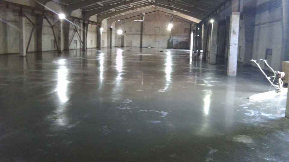 Объект состоял из двух промышленных складов площадью 955 м2. Помещения находились достаточно далеко от бетонного завода – в 40 минутах езды до объекта. Для того чтобы бесперебойно получать бетонную смесь, нам нужно было тщательно контролировать ответственного на бетонном узле. Основание пола состояло из старой бетонной стяжки, которая местами крошилась. Перепады доходили до 70 мм. Клиенту требовался ровный беспыльный бетонный пол.